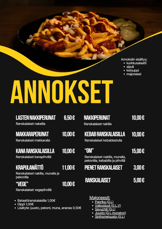 Kaikki muut ranskalaisannokset on gluteenittomia, paitsi kana ja vege.kaikki maitoa sisältävät ovat laktoosittomia.